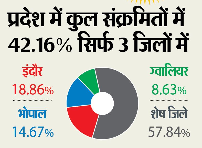 प्रदेश में कुल संक्रमितों में 42.16% सिर्फ 3 जिलों में